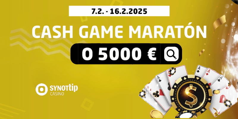 Máš v sebe pokerového ducha a chceš si zmerať sily s tými najlepšími? Cash Game Maratón v Synottip kasíne je tu, aby preveril tvoju vytrvalosť, stratégiu a schopnosť udržať sa v hre. Hraj, zbieraj body a zabojuj o podiel z banku 5 000 €!