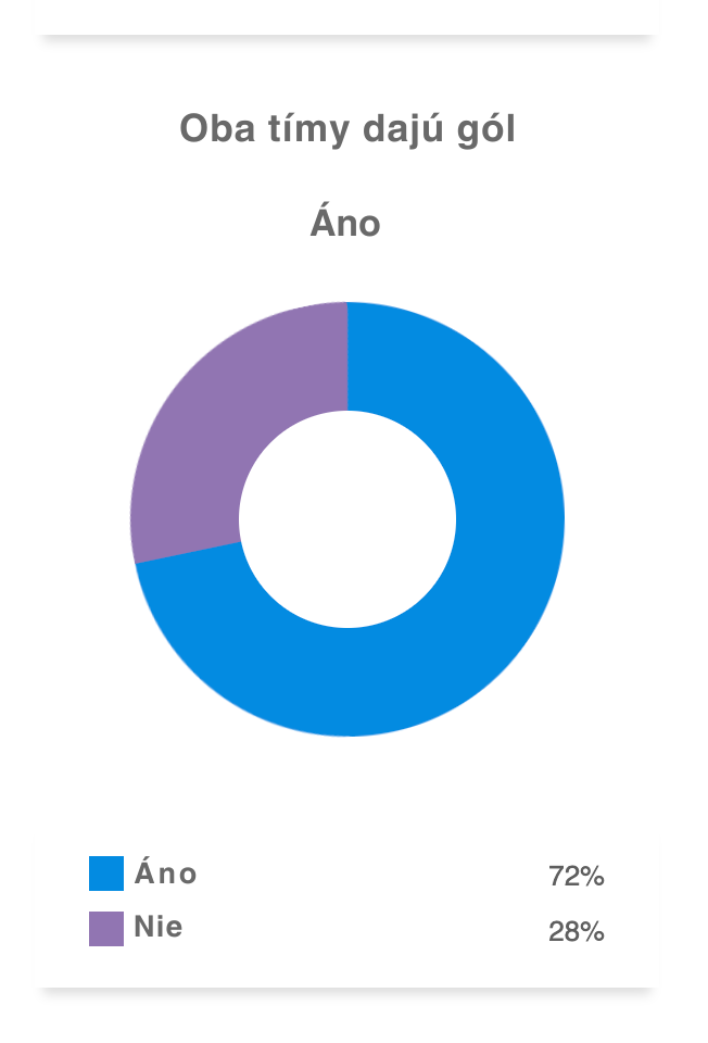 - Obe mužstvá skórujú (BTTS): Obe strany ukazujú ofenzívnu silu a zároveň slabiny v obrane, čo robí stávku na „oba tímy dajú gól“ logickou voľbou.