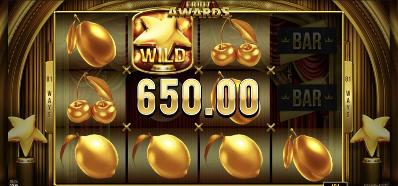 Fruit Awards si zakladá na jednoduchej a rýchlej hre, ktorá je ideálna pre hráčov, čo hľadajú krátke a zábavné rozptýlenie. Štyri valce a tri riadky, ktoré automat ponúka, spolu s obľúbenými ovocnými symbolmi vytvárajú prostredie pre svižnú hru. K tomu pridajte až 81 výherných línií a okamžite máte k dispozícii automat, ktorý prináša pravidelné výhry a skvelý zážitok bez zložitých bonusových pravidiel.