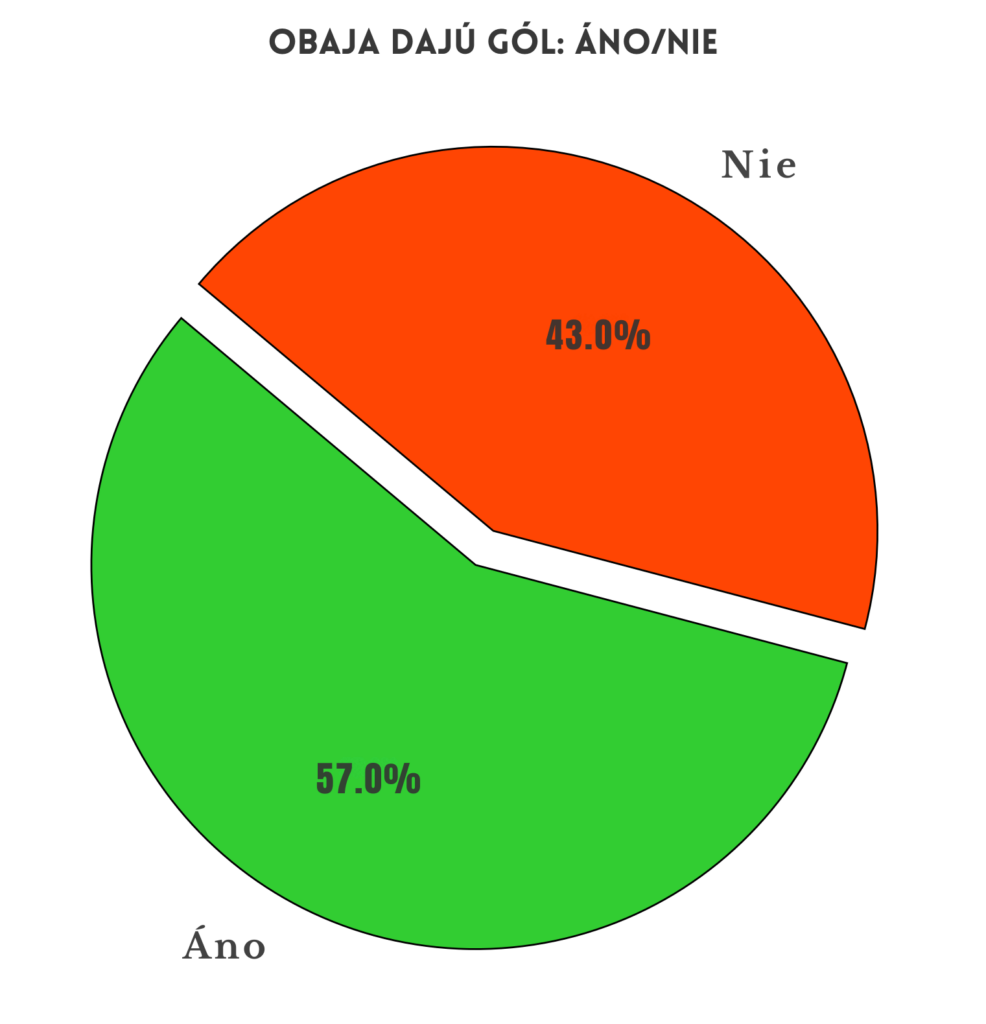 • Oba tímy skórujú: S ohľadom na útočné schopnosti oboch mužstiev je pravdepodobné, že oba tímy dosiahnu gól.