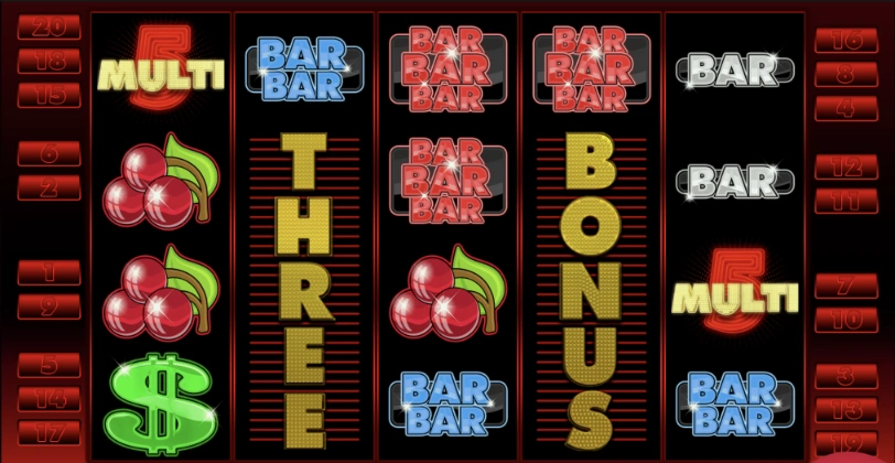 Druhý špeciálny symbol je rozdelený na tri časti: THREE, REEL a BONUS. Tieto symboly sa objavujú na druhom, treťom a štvrtom valci. Ak sa všetky tri objavia naraz, získate tzv. THREE REEL BONUS s 10 pretočeniami zadarmo. Počas tejto bonusovej hry sa valce zmenšia na mriežku 3×3 s 27 výhernými líniami, čo pridáva extra vzrušenie a nové možnosti výhier. Tento bonus robí Multi 5 hrou ešte zaujímavejšou.