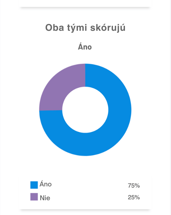 - Oba tímy skórujú: Áno – Šanca je okolo 75%, čo odráža ofenzívne schopnosti oboch tímov.