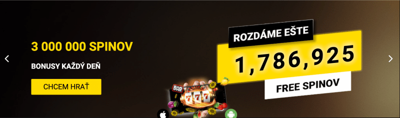 - Ak sa šťastie usmeje na teba, prijmi balíček free spinov alebo kredit (10 spinov = kredit 1 euro).