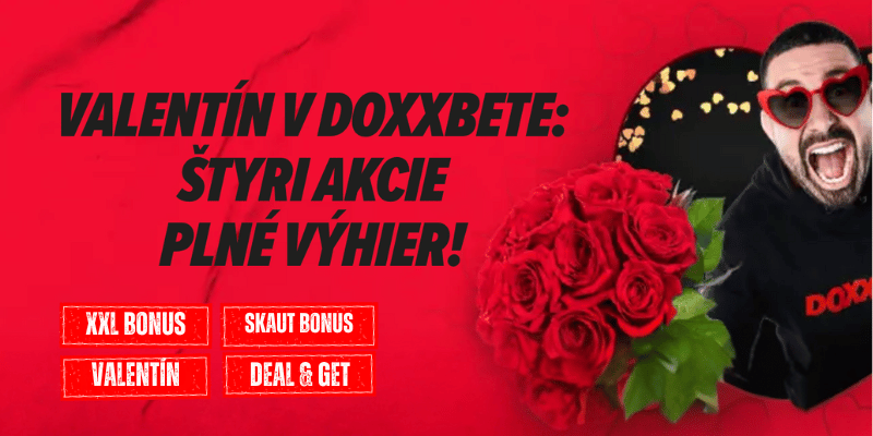 DOXXbet sa rozhodol spraviť z Valentína výnimočný deň, počas ktorého si užiješ hneď niekoľko atraktívnych akcií. Ak máš rád napätie, tipovanie alebo kasínové hry, teraz je ten správny čas zapojiť sa a využiť extra bonusy, ktoré ti zvýšia šancu na výhru.